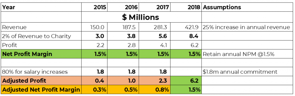 Employees who choose to remain with Gravity over the three-year period would want to help the person and business that improved their lives to stay afloat which is achievable. A high-level conservative summary on how the business results of the company could look like over the next few years show that the company would most likely remain a going concern.