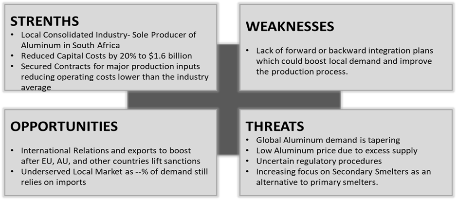Although the Project has ample opportunities to explore, the lurking threats and risks cannot be overlooked as it determines the extent to which the opportunities can be explored to recoup benefits. See Chart 1. The Hillside project is not a viable project for Alusaf to embark on at the moment. Key Pointers in the global and Domestic industry are analysed below: